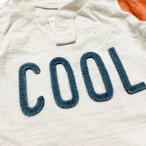 This is super adorable tiny little top! Cream with coral peach sleeves and raised grey 'COOL' print. Get this little henley in your bundle with some jeans, sweats and kicks for an adorable closet discount! EUC.