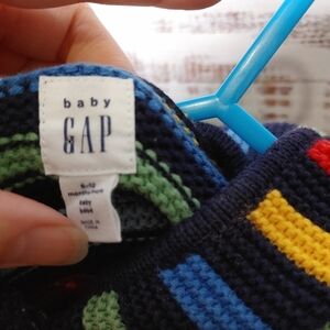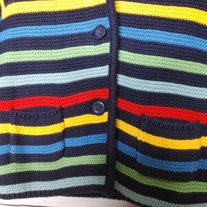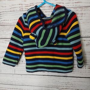 Adorable rainbow striped hooded cardigan with little ears on the hood and front pockets. In like-new condition.