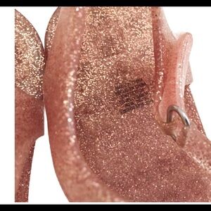 Rose gold jelly sandals with glitter detailing Velcro fastening. Open toe