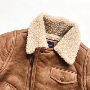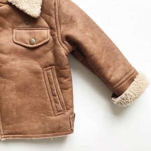 BABygap weathered brown shearling motto style jacket EUC 2T
