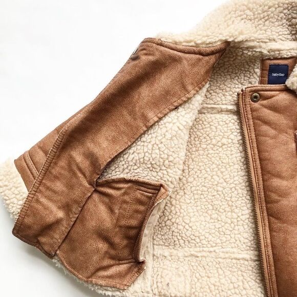 BABygap weathered brown shearling motto style jacket EUC 2T
