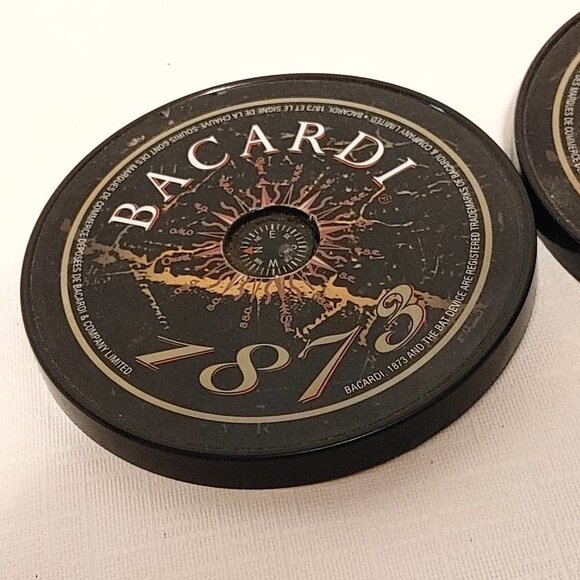 BACARDI 1973 Rum Coaster Set of 2 Embedded Compass