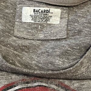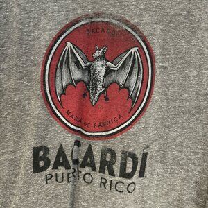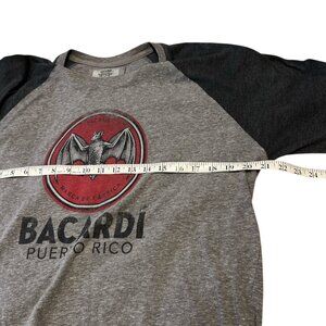 BACARDI RUM PUERTO RICO Tee Shirt Size Large Raglan Style Grey Distressed Look