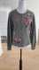 BACK BAY CO Grey Cashmere Button Front Cardigan Round Neck Floral Design Retro
