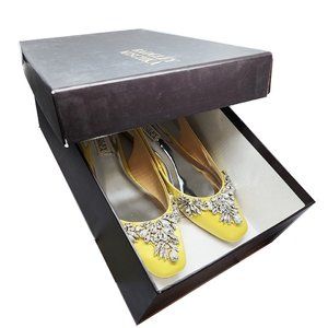 Stunning Badgley Mischka jeweled toed sandal with sling back in a rich yellow satin.