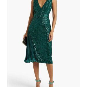 BADGLEY MISCHKA Satin-paneled sequined tulle dress - green size 6