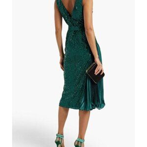 Satin-paneled Sequined Tulle Dress In Emerald