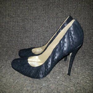 BADGLEY MISCHKA-BRYNN-Black Lace and Nude Pumps-Size 7.5M-Excellent