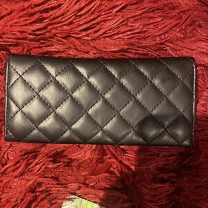 🖤⭐️Stunning sleek design BADGLEY Mischka Studio Quilted Black soft faux Leather wallet new same day shipping from smoke free home