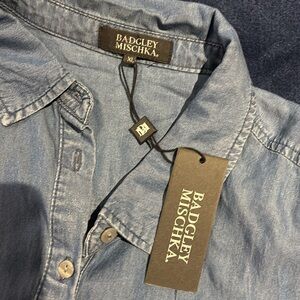 BADGLEY Mischka denim loose fit rhinestone pocket shirt Sz XL