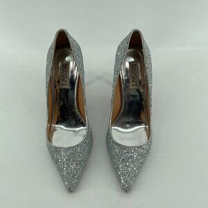 Badgley Mischka glitter sparkly silver pump high heel New Years Christmas party