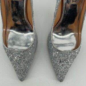 BADGLEY Mischka glitter sparkly silver pump high heel New Years Christmas party