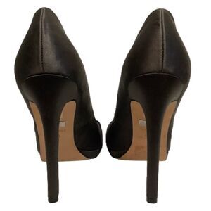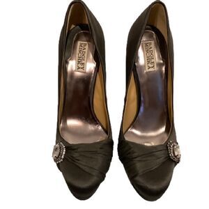 BADGLEY MISCHKA “ODELL” BLACK SATIN PLATFORM HEELS SIZE 8.5