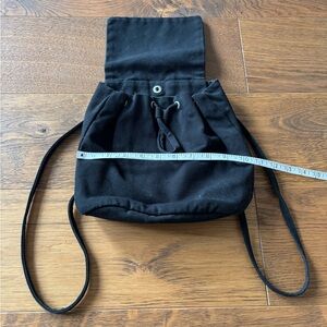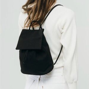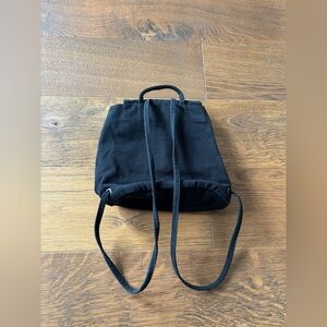 A petite canvas backpack. Strap length can be adjusted by changing knot placement inside bag. Holds a 10.5 in. iPad. Interior zip pocket holds an iPhone 7 Plus. Fully lined.