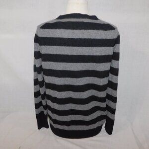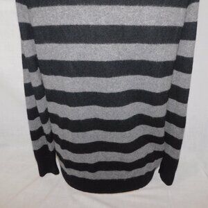 This Womens Large BAIA Black Gray Striped Cashmere V neck Sweater is in excellent clean bright super soft condition. Sweater is 100% Cashmere - hand Wash - lay flat to dry.