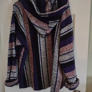 Size large unisex pullover hoodie with front pocket and hood. Size large. Comfortable , soft cotton like knit.
