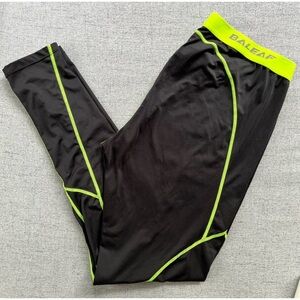 BALEAF Black neon green trim track pants leggings High visibility workout gym XL