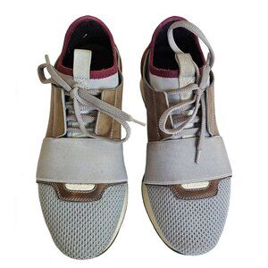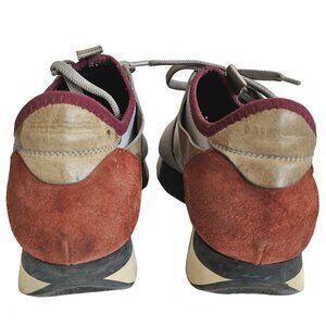 Crafted from grey nylon, these sneakers feature leather trim and brown suede heels. Elastic grey rubber panel on vamp.