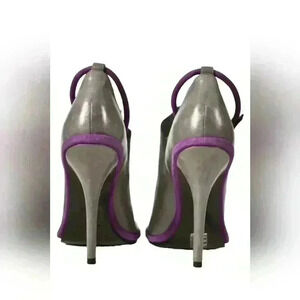 BALENCIAGA Grey Purple Leather Colourblock Slingback Pump Heels 39EU 9US Italy