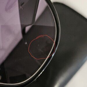 **a few scratches on lens. tried to shoot to show the scratches but camera is not picking up that clearly -please see last photo to see where one of the scratches is located. really not all that noticeable. had to hold glasses in pure sunlight to even see the scratches with naked eye