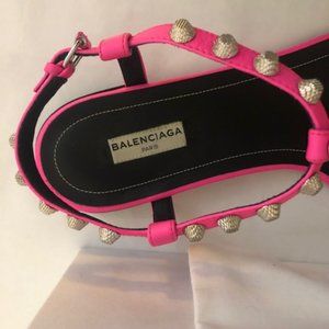 BALENCIAGA studded t-strap sandals NEON PINK