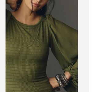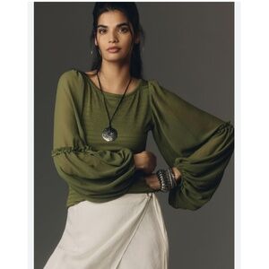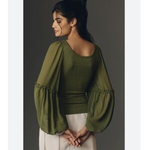 BALLOON-SLEEVE SMOCKED TOP