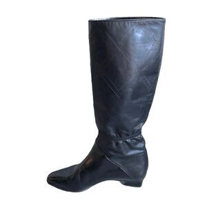 BALLY Black Leather Tall Fall Winter Lined Boots Small Heel Made In Italy 7