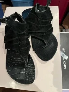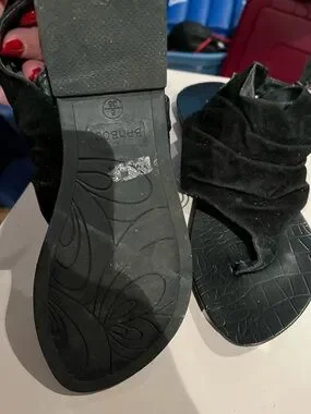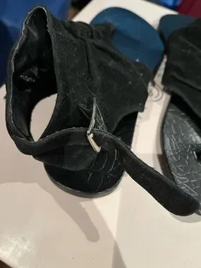 BAMBOO Black Ruched Toe-Loop Sandals