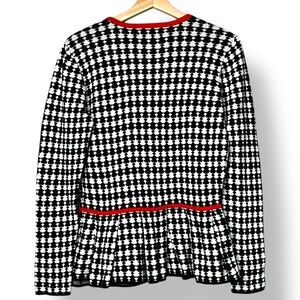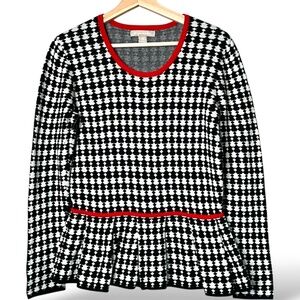 BANANA REPUBLIC 100% Cotton Piped Peplum Sweater Houndstooth Red Trim Sz L