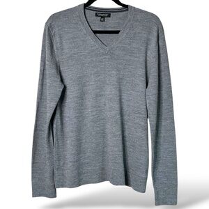 BANANA REPUBLIC 100% Merino Wool Grey Vee Neck Long Sleeve Sweater Sz L