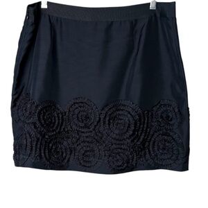 BANANA REPUBLIC 100% Silk Fully Lined Mini Skirt Floral Appliqués Side Zipper 14