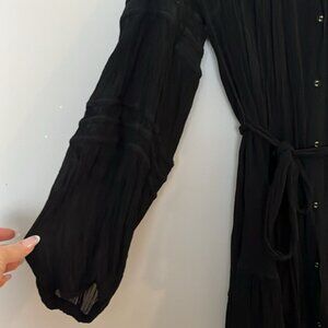 BANANA REPUBLIC BLACK CRINKLE MINI SHIRT DRESS FLOUNCE HEM M tall #802496