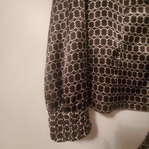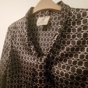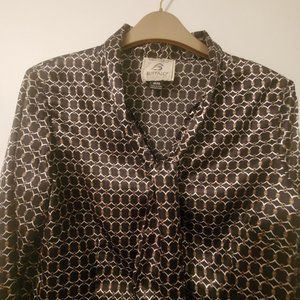 BANANA REPUBLIC Black Satin Print Blouse Fitted Button Down Tie Up Neckline MED
