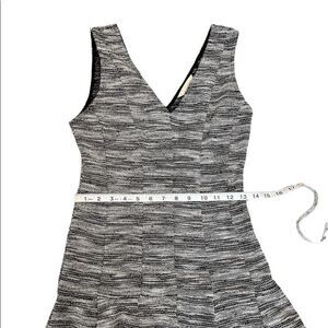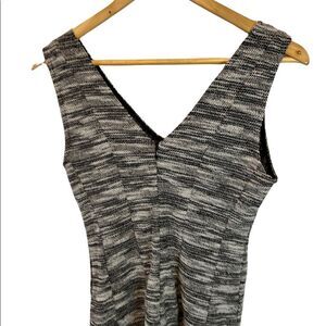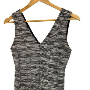 BANANA REPUBLIC Black & White Salt & Pepper Tweed Short V Neck Wide Strap Dress
