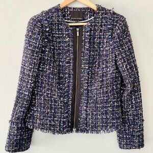BANANA REPUBLIC Blue, Black and White Boucle Jacket - Size 4