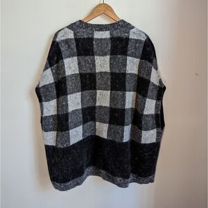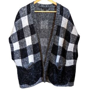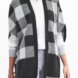 BANANA REPUBLIC Buffalo Check Black & White Wool Sweater/Cape Cardigan S…