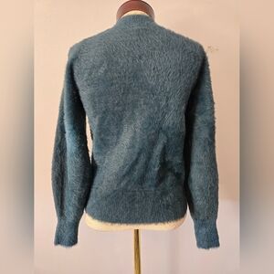 BANANA REPUBLIC Dark Teal Fuzzy Sweater with Gold Button Shoulder Detail.Size XS