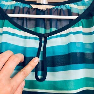 BANANA REPUBLIC FACTORY Blue Green White Stripe Light Sheer Peasant Blouse Sz M