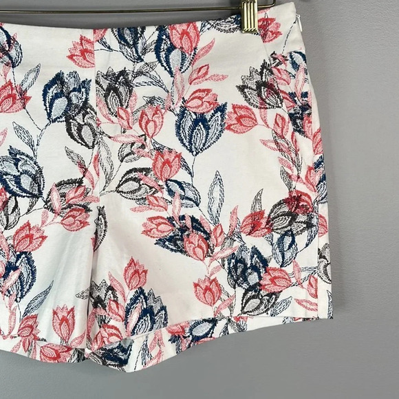 BANANA REPUBLIC Floral Shorts White Red Blue Flat Front Side Zip Preppy Size 8