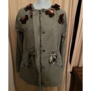 BANANA REPUBLIC Green Classic Cotton Utility Jacket with floral embellishments