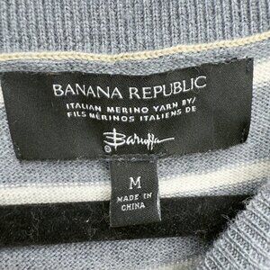 BANANA REPUBLIC Italian Merino Wool Baruffa Striped Gray Crewneck Sweater Size M