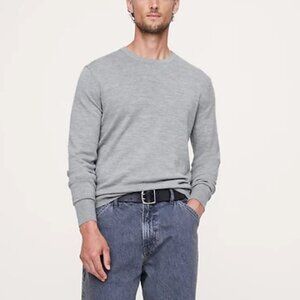 banana republic merino, italian merino wool, striped sweater, gray stripe crewneck, men’s medium sweater, baruffa yarn, lightweight wool pullover
