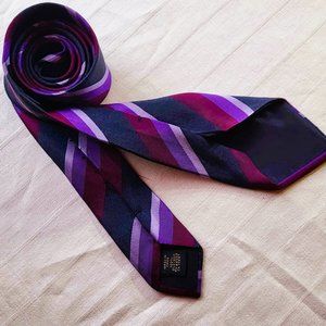 BANANA REPUBLIC Men's SILK Neck tie, purple, lila, & burgundy Striped pattern