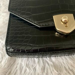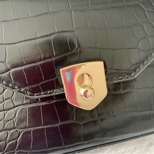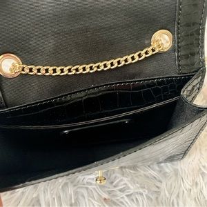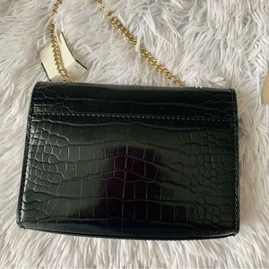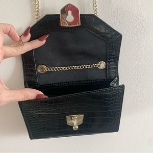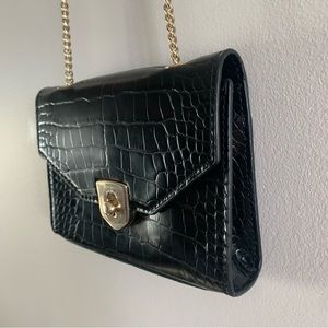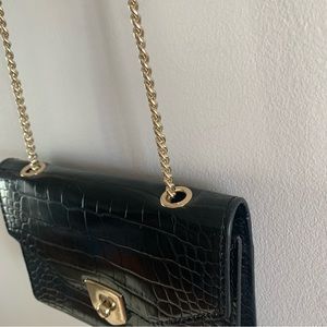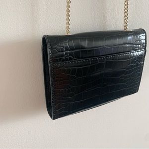 BANANA REPUBLIC NWOT Black Croc Mini Bag Cross Shoulder Gold Chain Purse