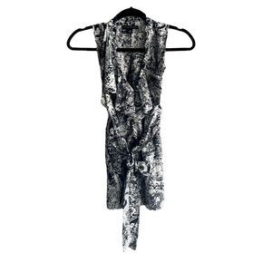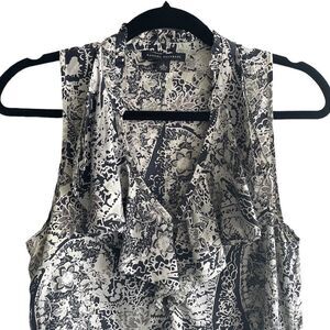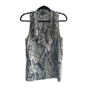 BANANA REPUBLIC Silk Printed Sleeveless V-Neck Blouse Tank Top Ruffle Belt S