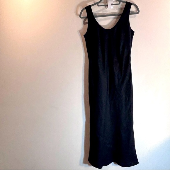 BANANA REPUBLIC Sz 4 100% Linen Shift Dress Lined Fit and Flare Style Scoop Neck l. This sleek black sheath dress from Banana Republic is perfect for a cocktail night out or even to wear to the office. Featuring a sleeveless design and a scoop neckline, it offers a sophisticated and streamlined silhouette. The midi length adds a touch of elegance, making it a versatile choice for any occasion. Dress up or down.