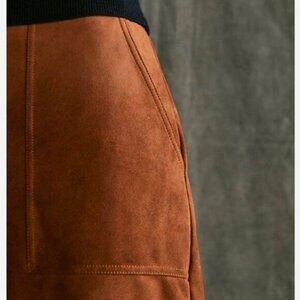 BANANA REPUBLIC Vegan Suede Mini Skirt w/ Pockets Nutmeg Brown Sz 10 T