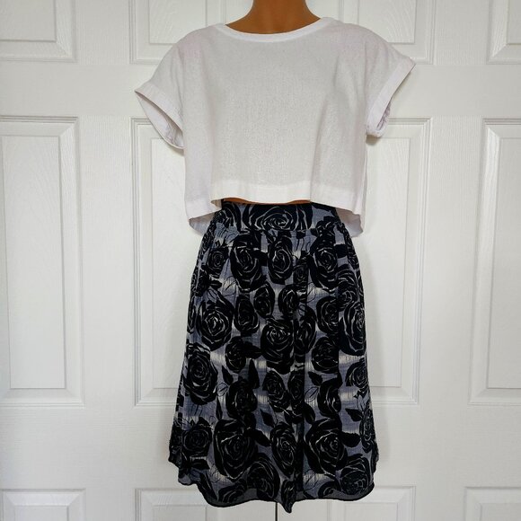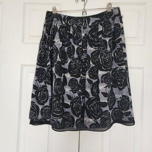 BANANA REPUBLIC WOMENS SKIRT SZ 4 BLACK AND GREY ROSES SILK AND COTTON