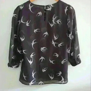 BANANA REPUBLIC | Women's Gray/White Swallow Print 3/4 Length Sleeved Bl…