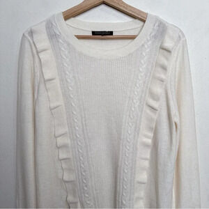 BANANA REPUBLIC Womens Medium Ruffle Front Cable Wool Sweater Ivory Color